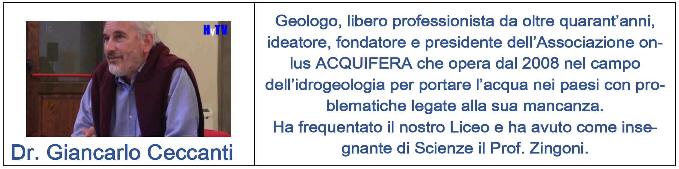 Il giorno 20 aprile alle ore 17:30 si terra l'incontro dal titolo Risorse idriche e sostenibilità. Sarà tenuto dal Dr. Francesco Cipriani.