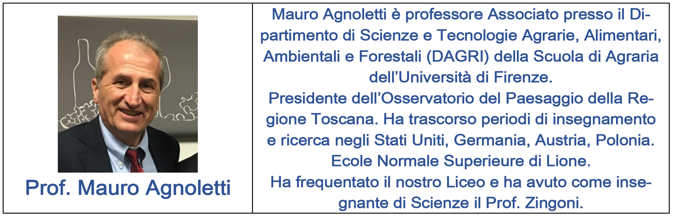 Il giorno 26 maggio alle ore 17:30 si terra l'incontro dal titolo Paesaggio e sostenibilità. Sarà tenuto dal Prof. Mauro Agnoletti (ex studente del Liceo).