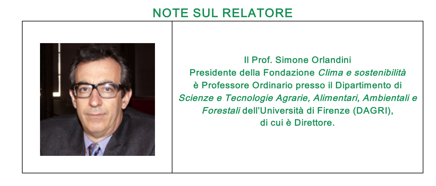 Il giorno 6 dicembre alle ore 17:30 l’Associazione propone un nuovo incontro che integra e completa il ciclo di riflessioni sviluppate nell’anno 2021 nell’ambito del tema della sostenibilità. Sarà tenuto dal Prof. Simone Orlandini, presidente della Fondazione Clima e Sostenibilità e Professore Ordinario presso il Dipartimento di Scienze e Tecnologie Agrarie, Alimentari, Ambientali e Forestali dell’Università di Firenze (DAGRI), di cui è Direttore. Gli incontri si svolgeranno in presenza (previa iscrizione) e in streaming sulla piattaforma ZOOM e sulla pagina Facebook del sito degli Amici del Liceo da Vinci di Firenze.
