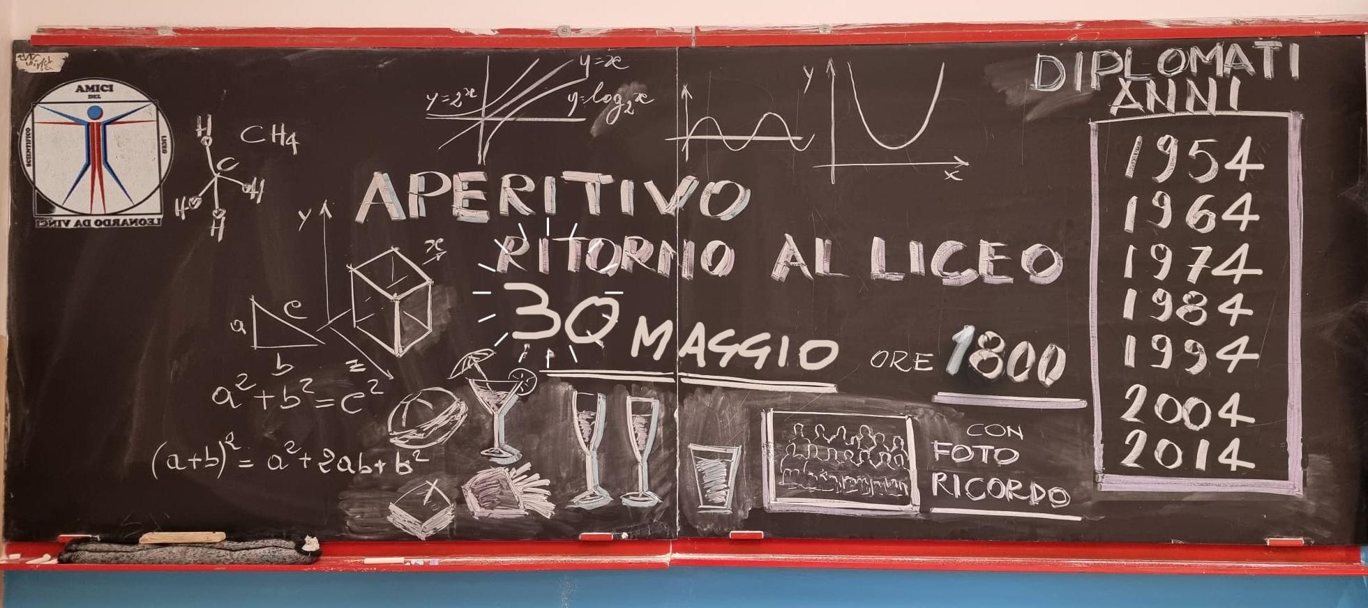 L’associazione Amici del Liceo Leonardo Da Vinci di Firenze organizza un brindisi per gli ex studenti diplomati negli anni 1954, 1964, 1974, 1984, 1994, 2004 e 2014 per brindare ai 70, 60, 50, 40, 30, 20, 10 anni dalla maturità. L’evento è previsto il 30 maggio 2024 (save the date) nei locali del Liceo alle ore 18.